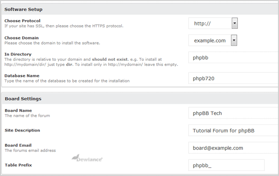 - In Directory: If you want to install this in a directory, for example example.com/forums, enter the directory name. Otherwise, leave this blank to install in your main domain example.com
