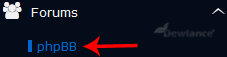 4. On the left side of your screen you should locate the "Forums" category. Click on it and then click on the "phpBB" link that will appear.